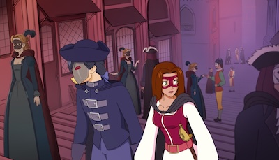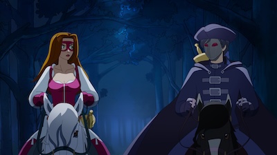 Sous Louis XV. Maud assiste à la mort de son père, assassiné par un inconnu qu’elle a juste le temps de balafrer. À la recherche de la vérité, elle monte à Paris et est recueillie par son grand-père, un noble rigide qui l’initie à la cour à Versailles. Mais Maud ne s’intéresse qu’au bandit de grand chemin, le Renard, qui déleste les riches pour donner aux pauvres. Elle se met alors à jouer les justicières masquées en devenant la Rose Écarlate pour venger son père et tenter d'approcher le Renard...